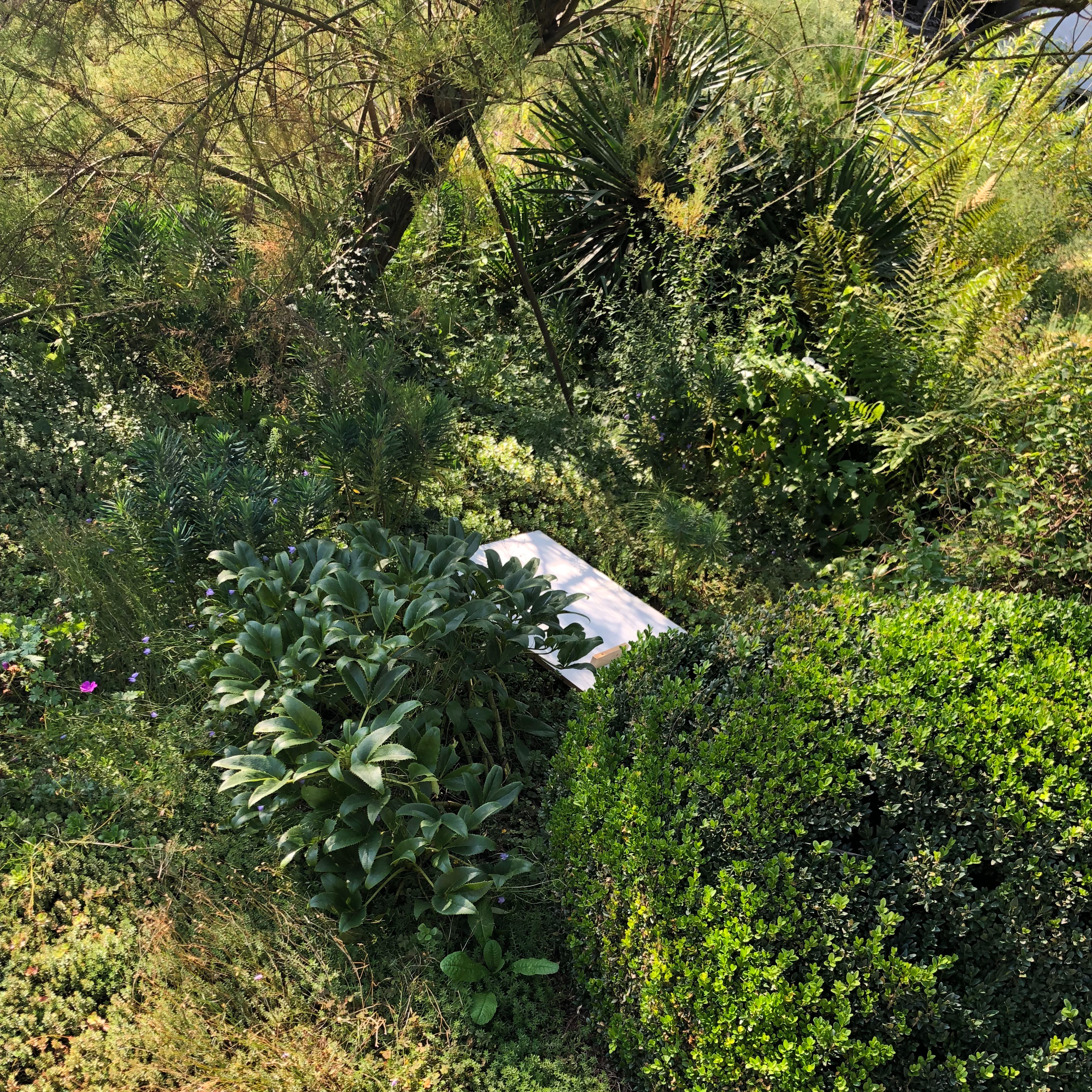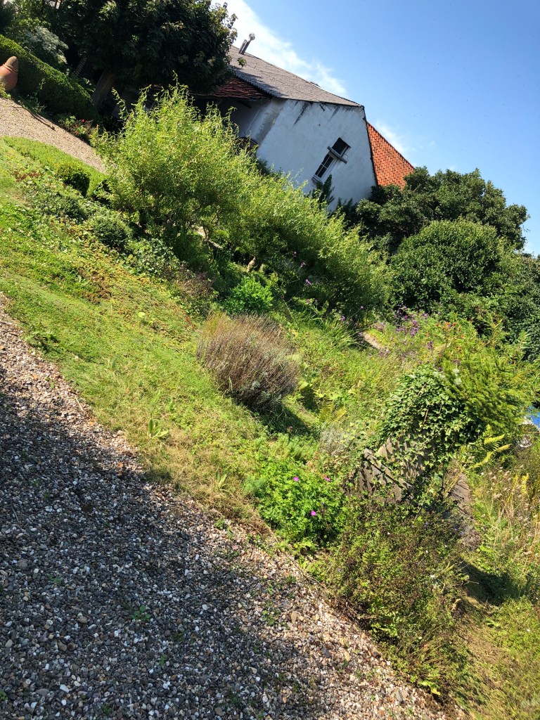Het heeft geholpen; de wolken vragen voor mooi weer. Het was gisteren prachtig in de tuin van het blauwe huis in Bemelen. Overal werd geschoffeld tussen de begroeide paden en de kunstwerken werden gedragen als net geboren baby’s. Vandaag komt het echte werk, de installatie van een nieuw werk tussen de woekerende planten. Wat een fijn vooruitzicht.